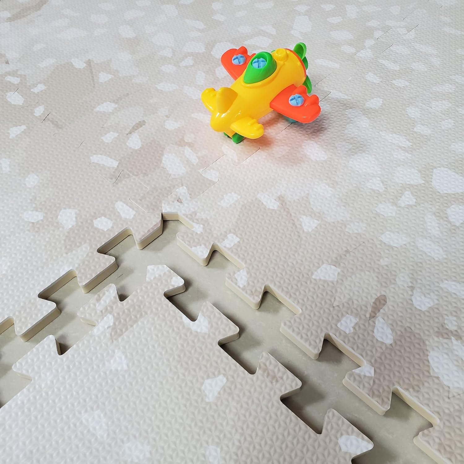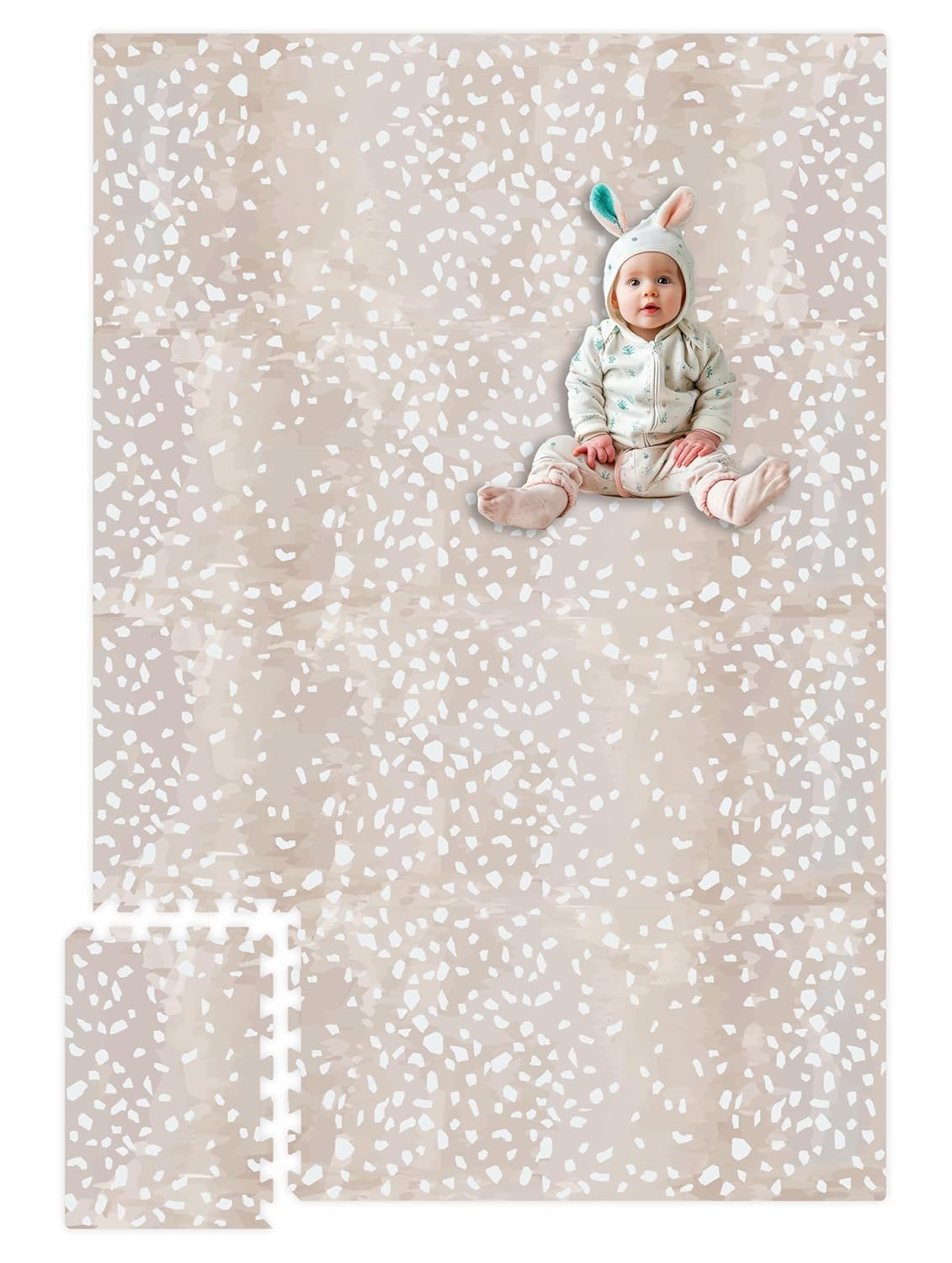 🧩 Camouflaged Terrazzo Design: A gentle, trendy terrazzo sample with impartial tones, thoughtfully designed to mix seamlessly into any residence décor whereas offering a trendy play space to your infant.