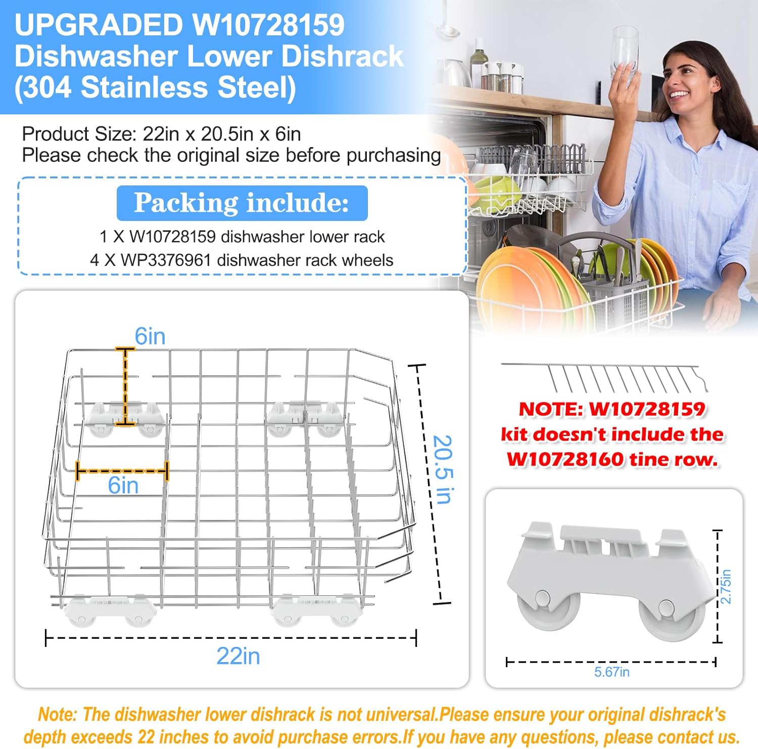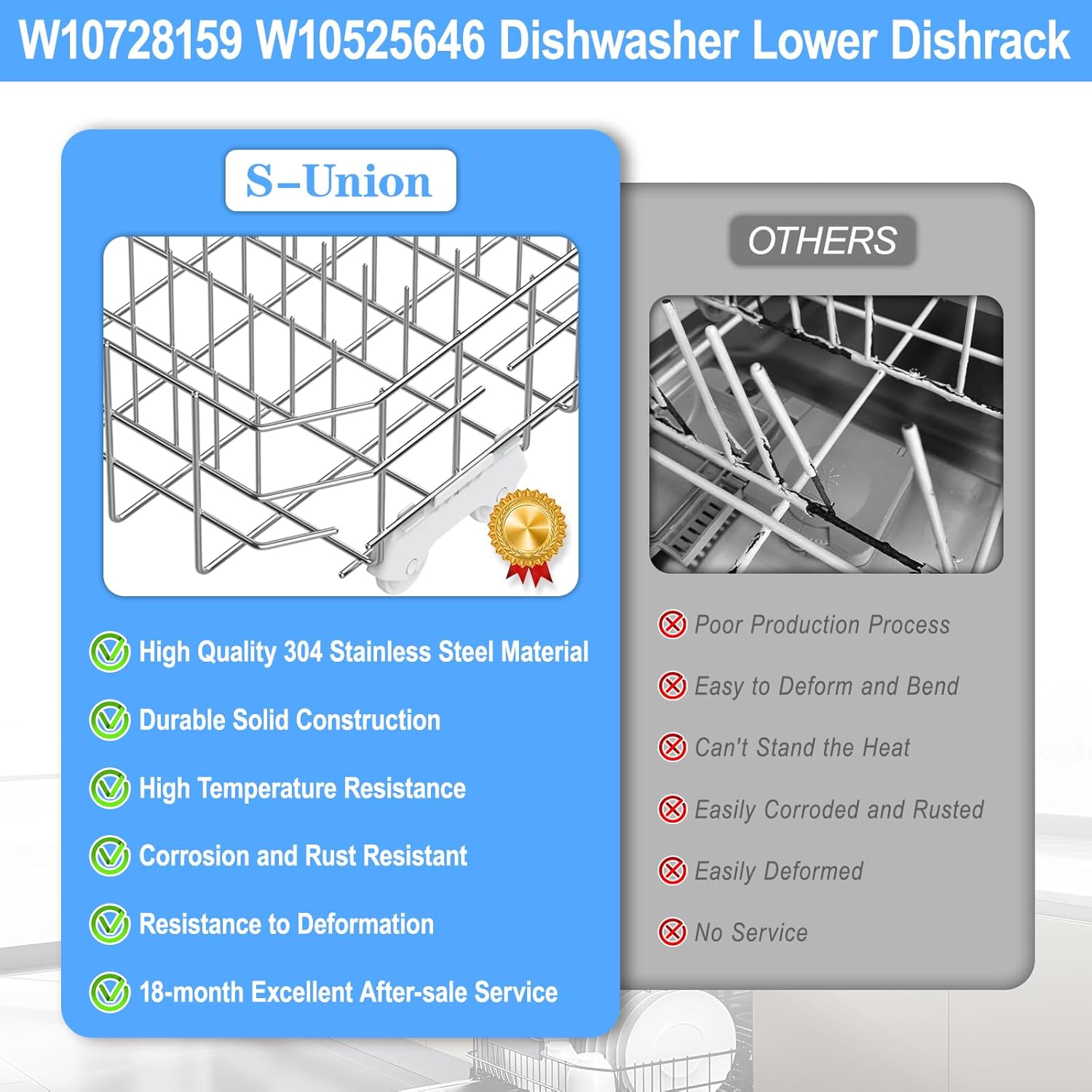 【Wonderful After-sale Service 】Packing embrace: 1 X W10728159 kitchenaid dishwasher decrease rack (304 stainless-steel),4 X dishwasher rack wheels. We offer 18-month guarantee and assure you the perfect service.No threat purchasing.Purchase with confidence. You probably have any questions,Please contact us by electronic mail, if the there may be any downside within the w10728159 kitchenaid dishwasher rack elements product, broken or not match,S-Union present full after-sales service and can attempt our greatest to resolve the issue.Buyer satisfaction is our tireless pursuit.