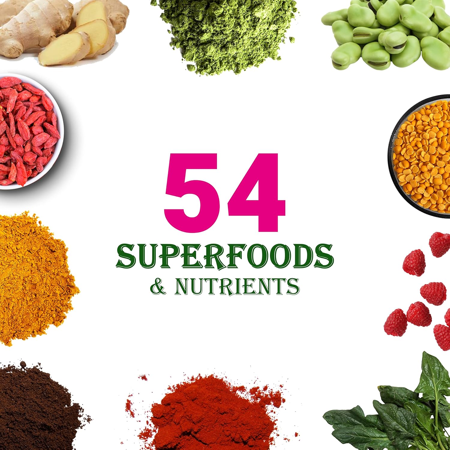 𝟱𝟰 𝗦𝗨𝗣𝗘𝗥𝗙𝗢𝗢𝗗𝗦 𝗕𝗟𝗘𝗡𝗗: Containing 54 superfoods, like alfalfa, broccoli, brussels sprouts, kale, black currant, spinach, blueberry, goji berry, raspberry, and seabuckthorn, rich in various vitamins, minerals to supports immune system health