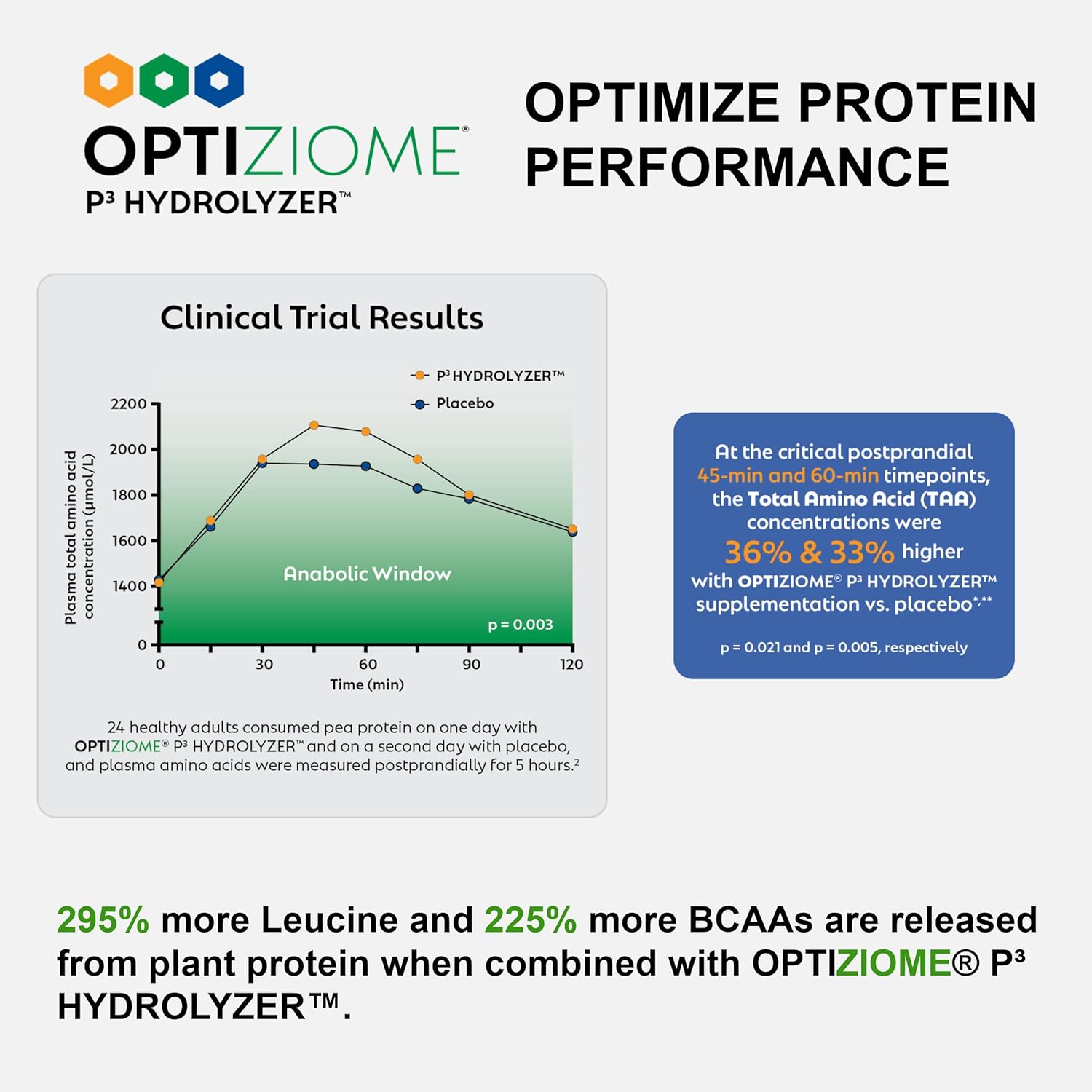 OPTIZIME P3 Digestive Support: Featuring an innovative enzyme blend, this vegan protein powder increases Total Amino Acid (TAA) absorption by over 30% within 45-60 minutes, helping your body make the most of every scoop.