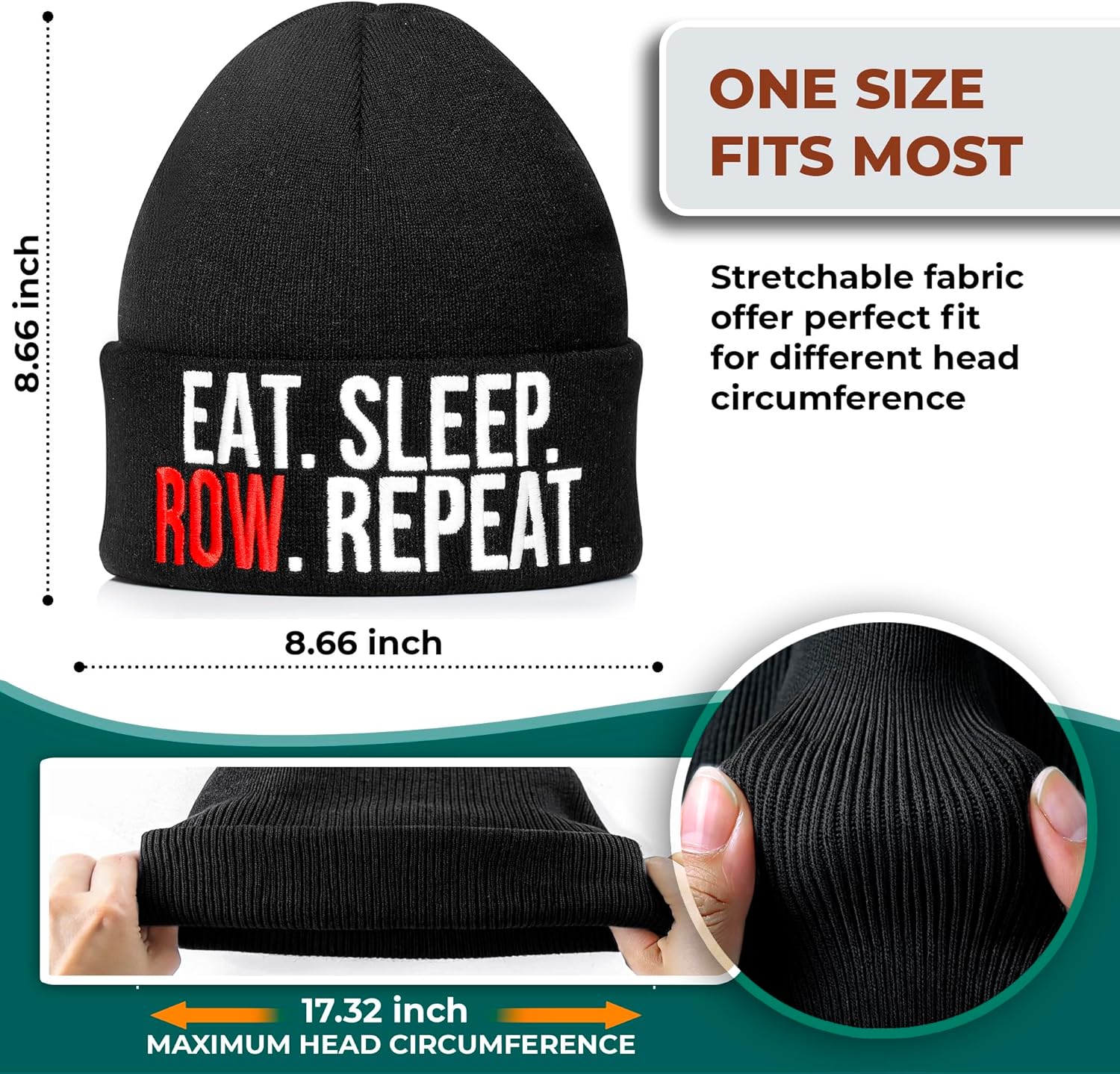 VELENTI Rowing Beanie Hat – Eat Sleep Row Repeat Embroidered Knit Wint…
