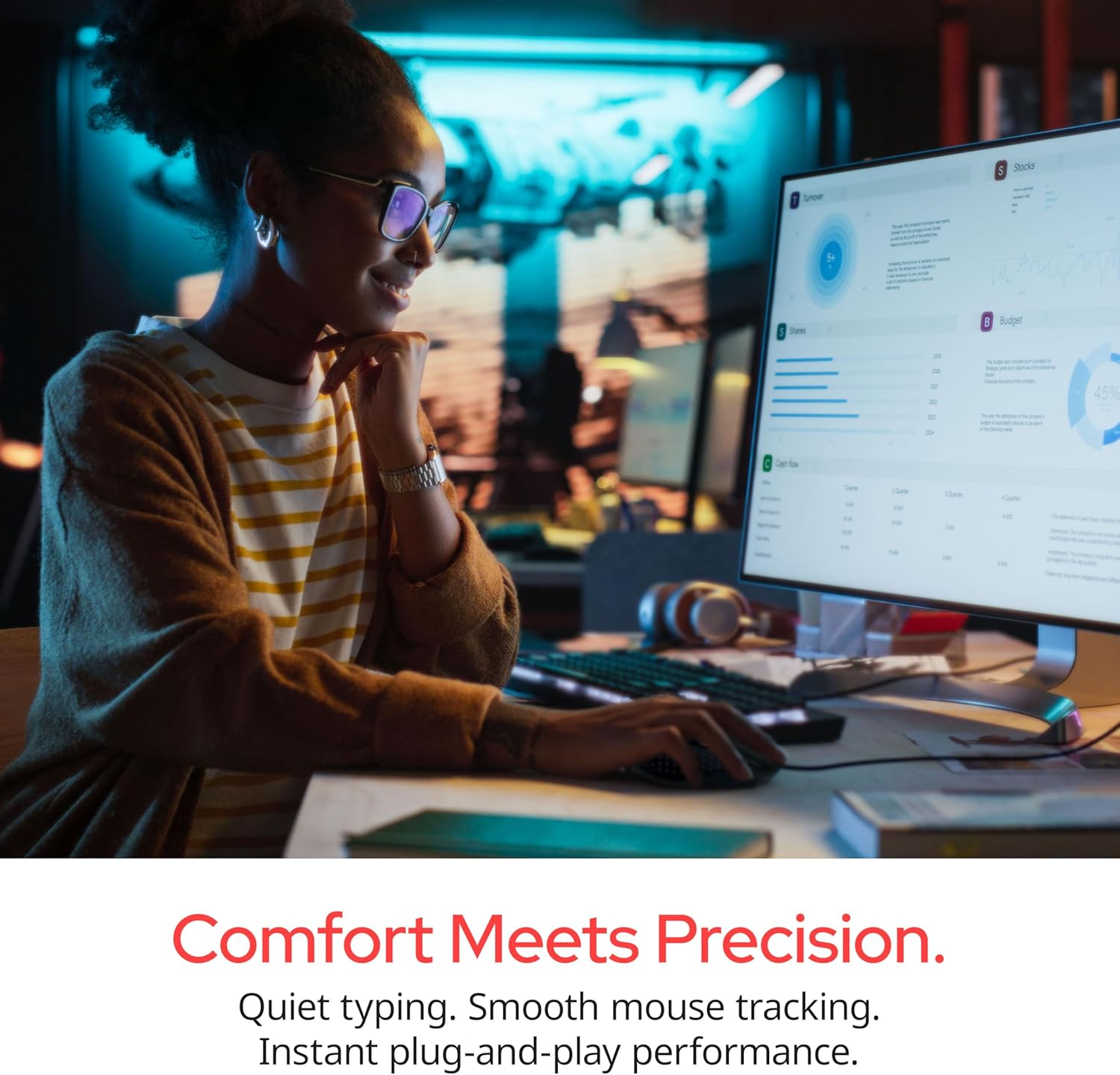 • Superior tactile keys with low-profile design for quiet, comfy typing