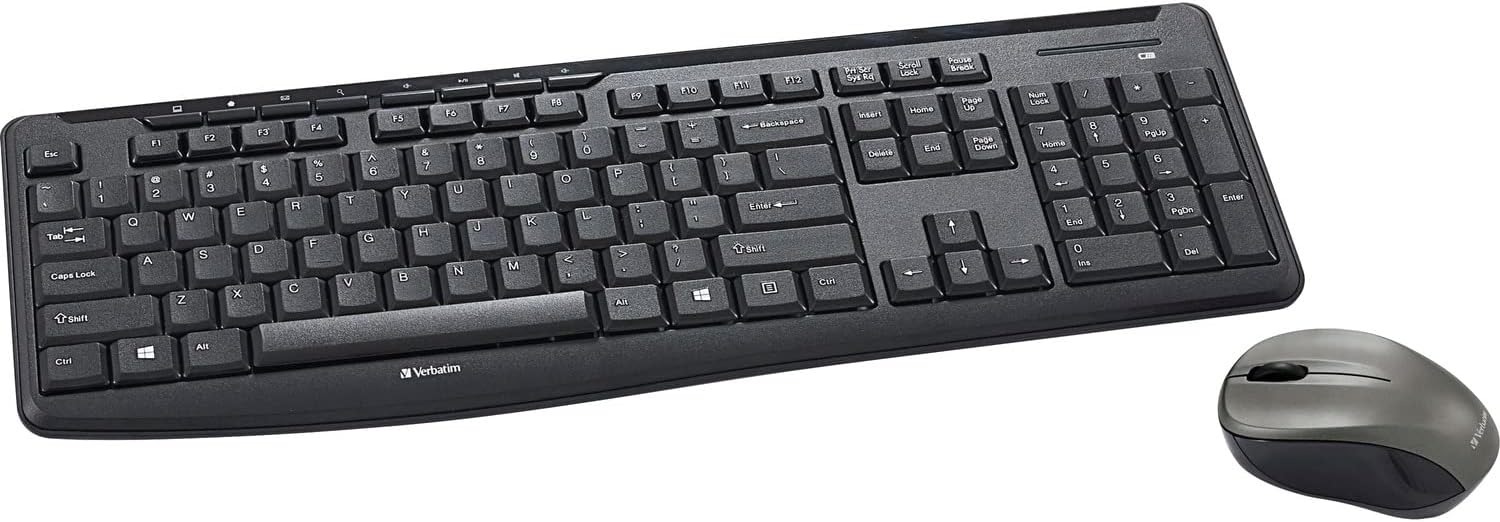 Say goodbye to noise and good day to silence with the Verbatim Silent Mouse and Keyboard. Utilizing new Silent Know-how, silent click on switches, and rubber covers, these Verbatim merchandise are actually silent. The nano receiver is sufficiently small to plug in and go away related and the two.4GHz wi-fi efficiency permits for a lag-free connection. The Silent Mouse options Blue LED know-how, permitting customers to level and click on on extra surfaces than different mice – from a glass desk to the granite kitchen counter! The Silent Keyboard incorporates a full numeric keypad and full-size operate keys, all inside a slim, environment friendly design. Contents: Keyboard, Mouse, Nano receiver, 4 x AAA batteries Bundle Consists of: Keyboard, Mouse, Nano receiver, 4 x AAA batteries