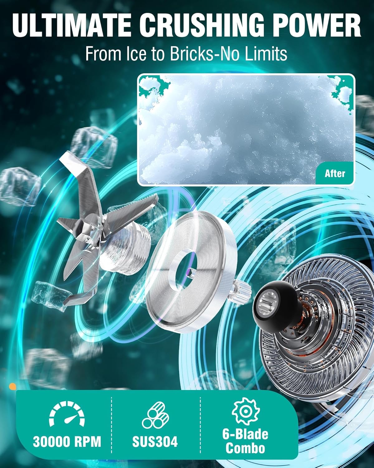 EXTENDED 6-BLADE TECH: The upgraded 6-leaf blade system contains 2 prolonged flat blades, 2 serrated blades, and a pair of vertical blades, guaranteeing 360° protection with zero blind spots. Fabricated from food-grade 304 chrome steel, this excessive pace blender pulverizes even the hardest substances like celery and carrots with out clogging or layering, guaranteeing silky, lump-free outcomes each time