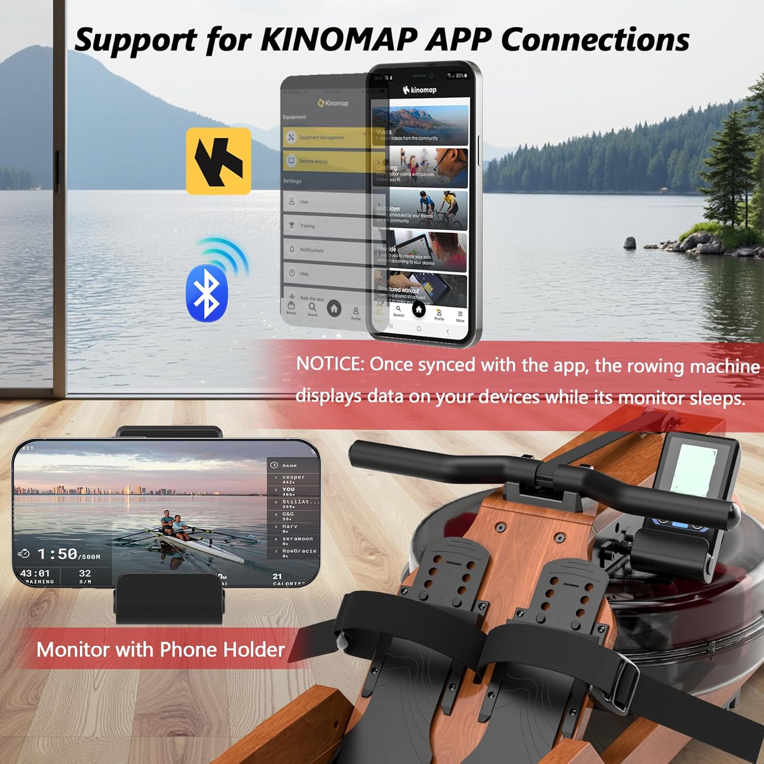 [Clear Display & Bluetooth Support] The rowing machine shows key metrics like distance, time, and energy, permitting you to observe your health targets successfully. Assist the KINOMAP APP, Bluetooth monitor tracks essential information throughout your exercise, making your coaching extra enjoyable. Monitor with cellphone holder. Pill is just not included. Use two AAA batteries. Discover:As soon as synced with the app, the rowing machine shows information in your units whereas its monitor sleeps.