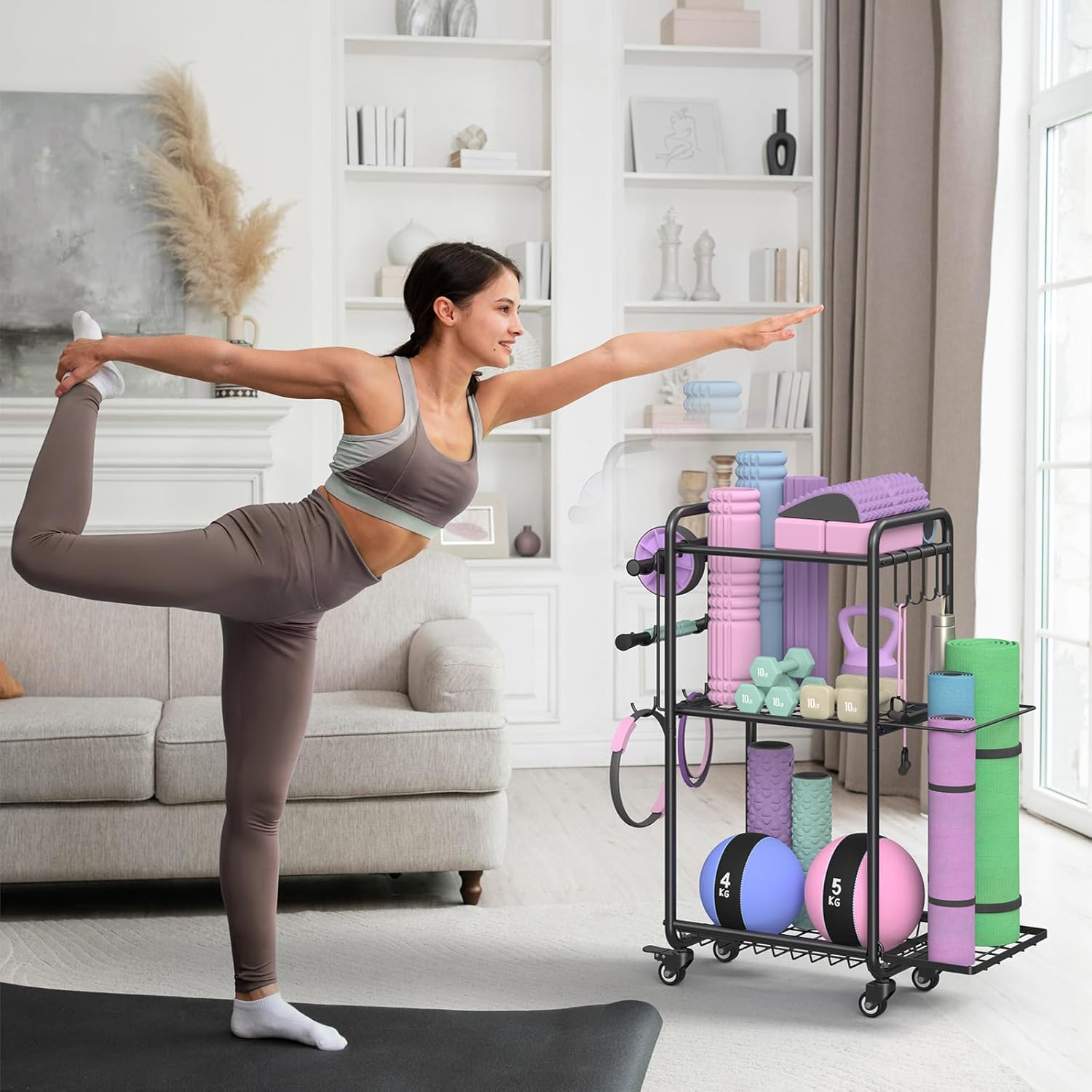 UPGRADED WHEELS & ACCESSORY HOOKS: This health gear organizer comes with 4 smooth-rolling wheels (together with 2 locking ones), making it simple to maneuver round your private home. Moreover, the built-in, detachable hooks on each side supply additional area for hanging towels, ab rollers, resistance bands, yoga straps, and different dwelling gymnasium necessities