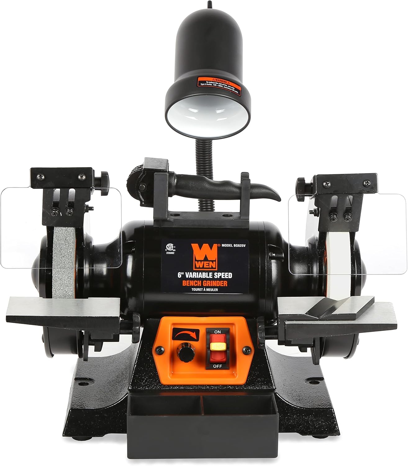 Bear in mind once you spent all that cash changing boring, rusty instruments? It’s time to get your grind on with the WEN 6-Inch Variable Velocity Bench Grinder. From deburring ragged edges to cleansing objects to sharpening blades, this bench grinder helps resuscitate previous, worn-down knives, instruments, and bits, saving you money and time. Our package deal consists of two 6-inch by 3/4-inch wheels with 1/2-inch arbors: an 80-grit wheel for normal function grinding and a rough 36-grit wheel for sooner materials elimination. With our quiet 2.5-amp variable velocity motor, anticipate fast startups and clean efficiency at speeds anyplace from 2000 to 3400 rotations per minute. Constructed with you in thoughts, our design makes wheel guard elimination so simple as doable for straightforward wheel modifications. The included versatile work gentle illuminates your workpiece throughout operation. Adjustable work rests pivot to permit for angled grinding functions. And since it’s a WEN product, your 6-inch variable velocity bench grinder comes backed by a two-year guarantee, a stocked stock of substitute elements, and a pleasant buyer telephone line. No have to waste any more cash on new knives and blades. The WEN 6-Inch Bench Grinder revives all your instruments, bringing them again to their authentic, sharp state. Bear in mind when your blades might really minimize by means of one thing? Bear in mind WEN.