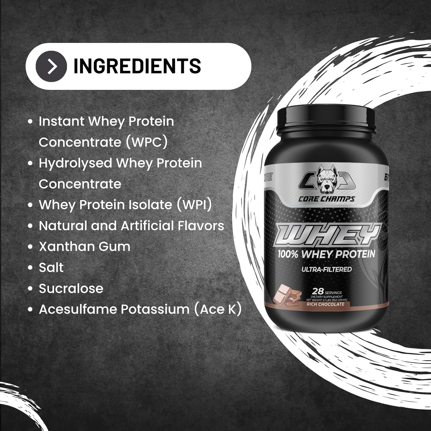 QUALITY WHEY PROTEIN: Gas your muscle-building journey with the perfect! Core Champs Whey Protein is a completely loaded prompt whey protein that gives 25 grams of protein per scoop, full of important amino acids and glutamine for max efficiency and restoration.