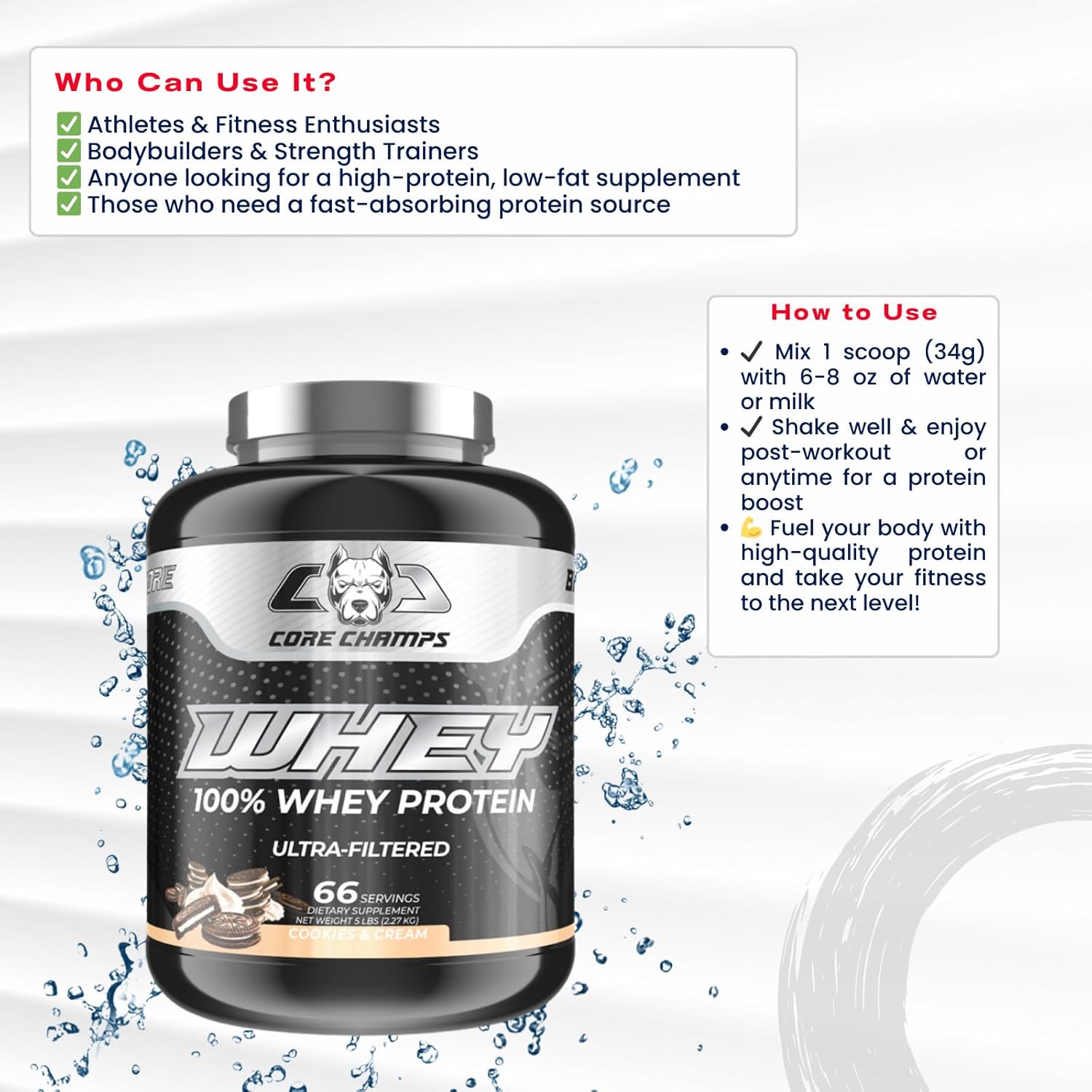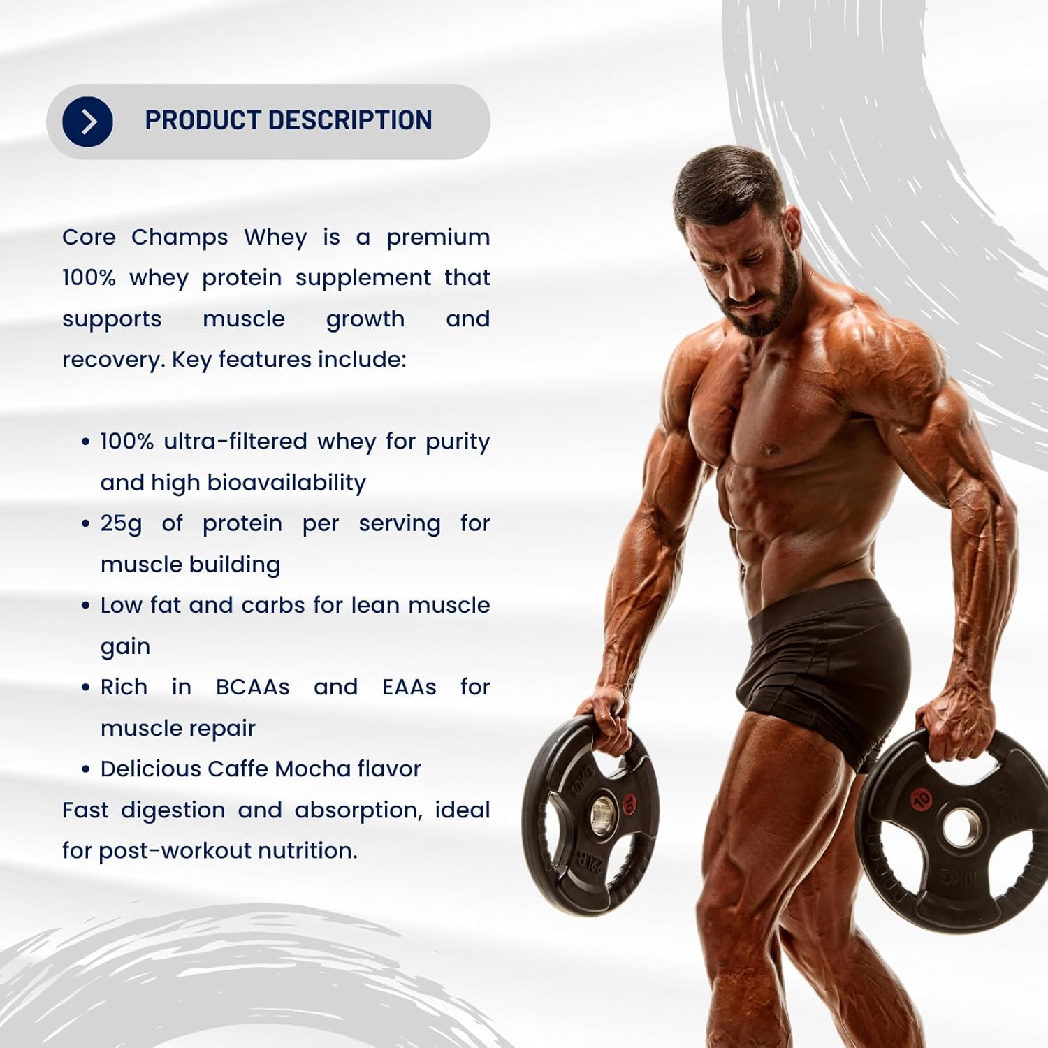 QUALITY WHEY PROTEIN: Gas your muscle-building journey with one of the best! Core Champs Whey Protein is a completely loaded prompt whey protein that gives 25 grams of protein per scoop, full of important amino acids and glutamine for max efficiency and restoration.