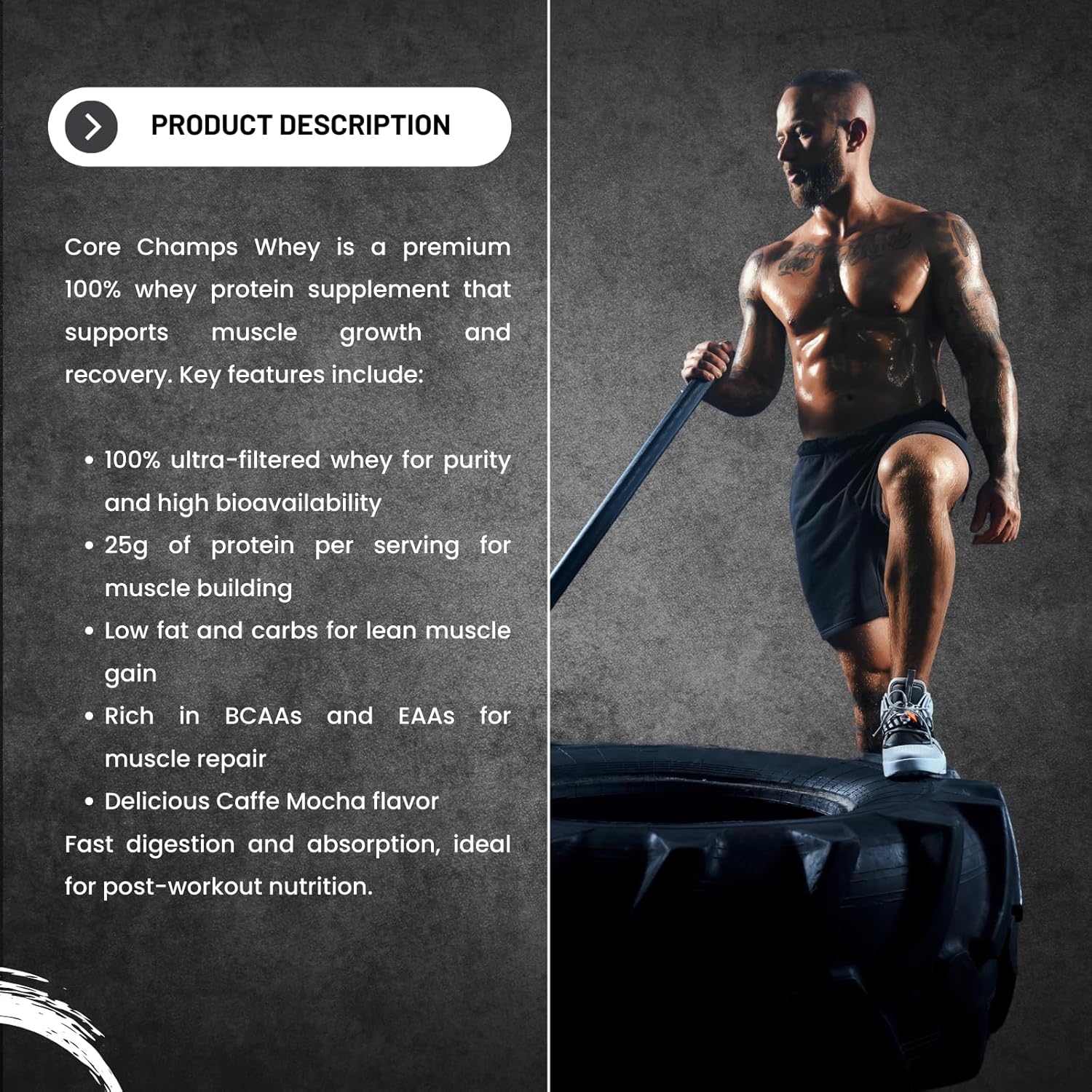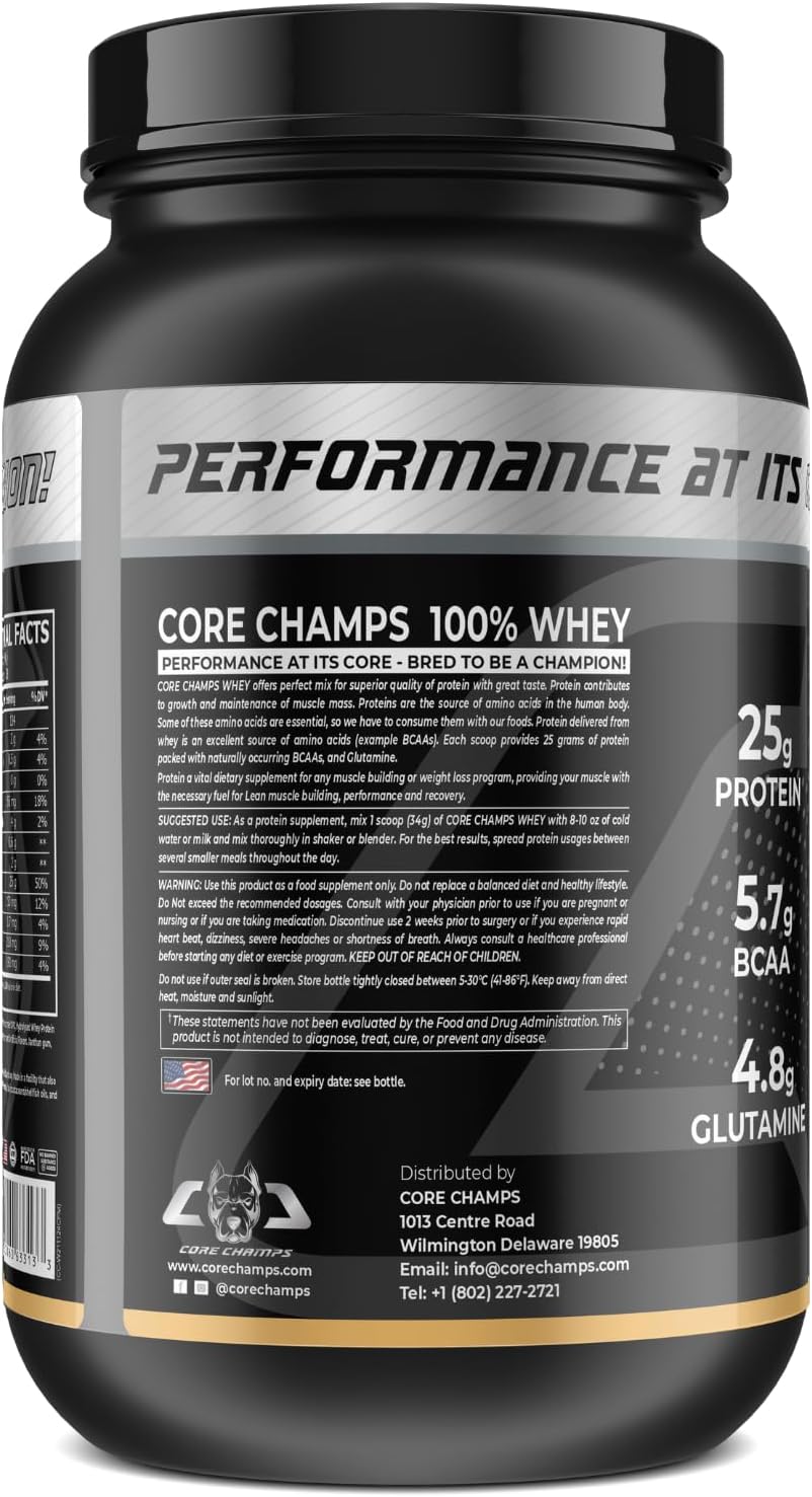 QUALITY WHEY PROTEIN: Gas your muscle-building journey with the most effective! Core Champs Whey Protein is a totally loaded prompt whey protein that gives 25 grams of protein per scoop, full of important amino acids and glutamine for max efficiency and restoration.