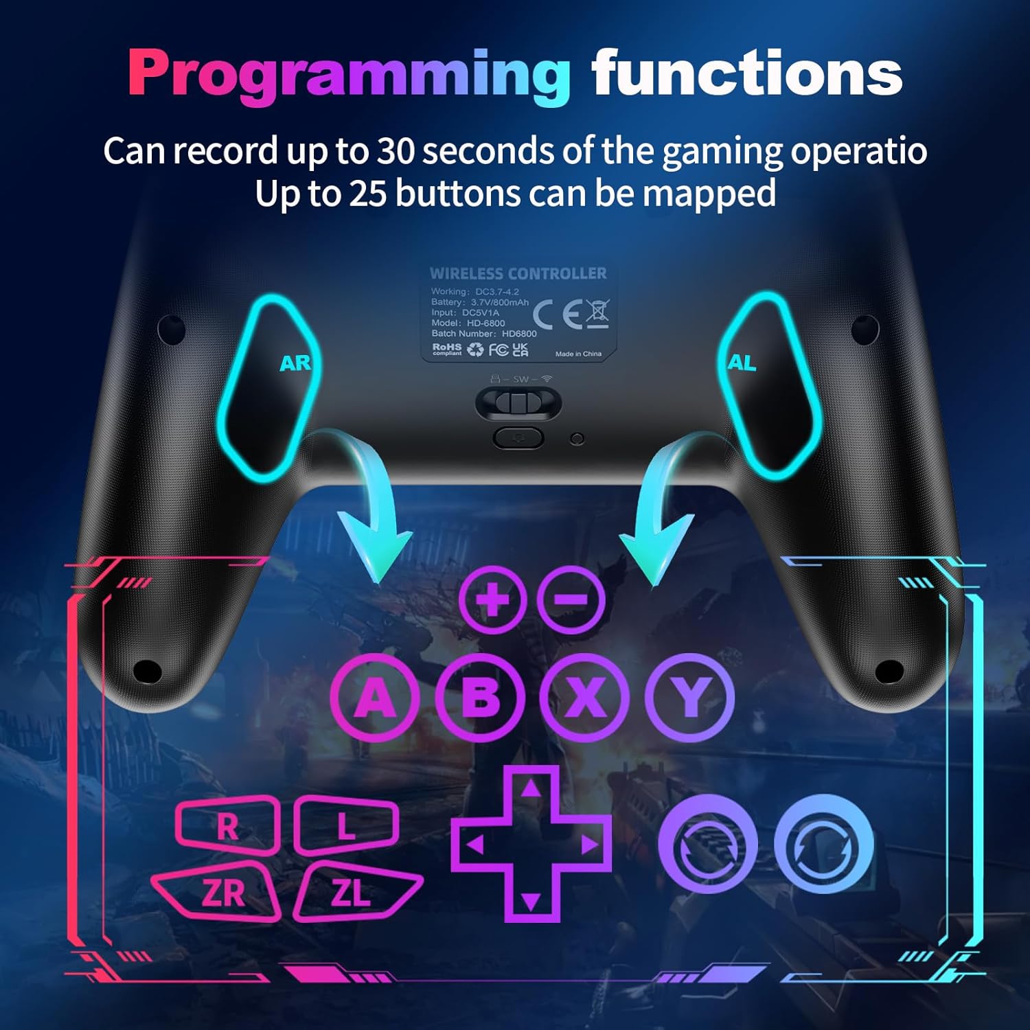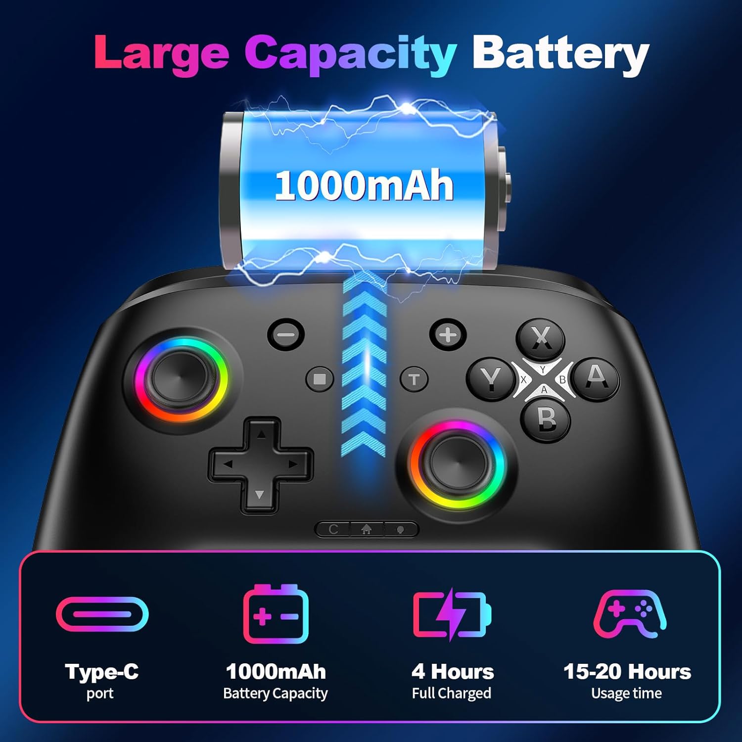 🔋1000mAh Battery & 9-Shade RGB LEDs:This change controller utilizing the included USB Sort-C fast-charging cable, a full cost takes solely 3 to 4 hours, and it may final for 10 to 20hours even with the LED lights on.This bluetooth controller affords 9 customizable RGB lighting results, which can be turned off to save lots of battery or for out of doors use.