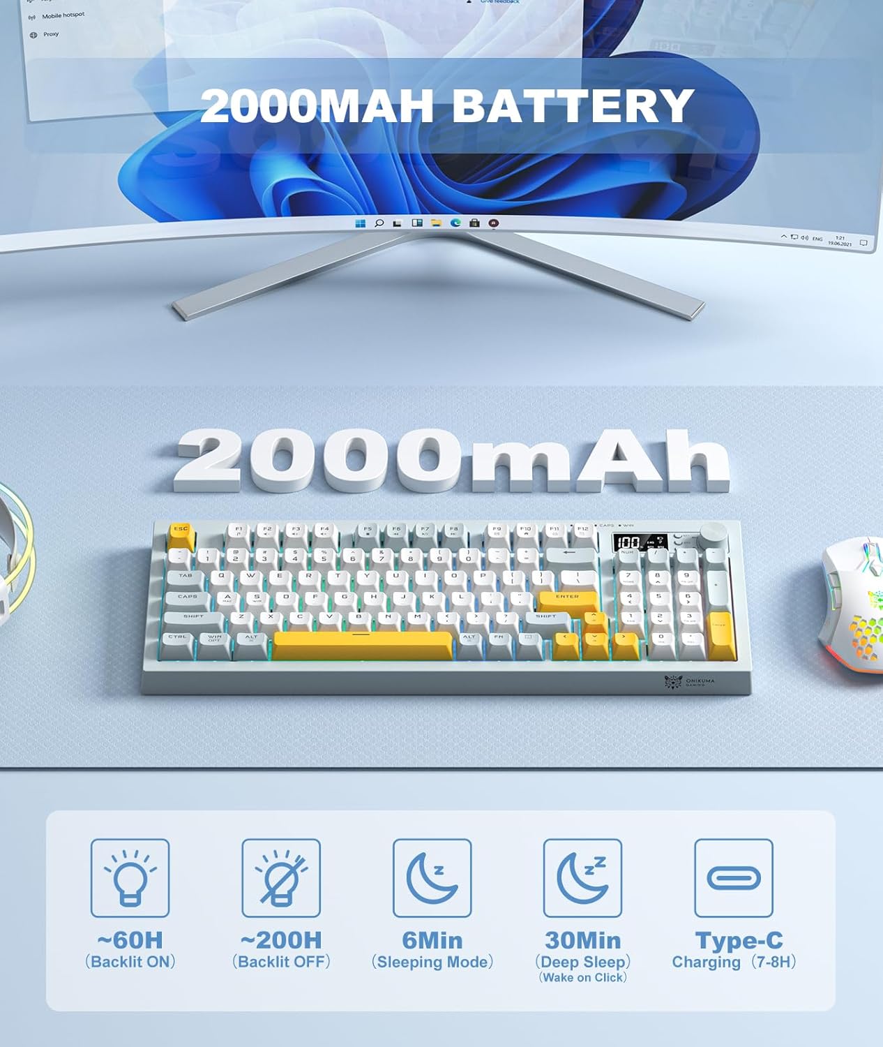 【Ergonomic Design】Customise your typing angle with built-in silicone ft and benefit from the premium texture of PBT keycaps. This wi-fi keyboard combines ergonomic consolation with modern aesthetics, offering all-day typing consolation with out compromising on model.Word:The delete key can solely be used when the quantity part is closed (by urgent NUM)