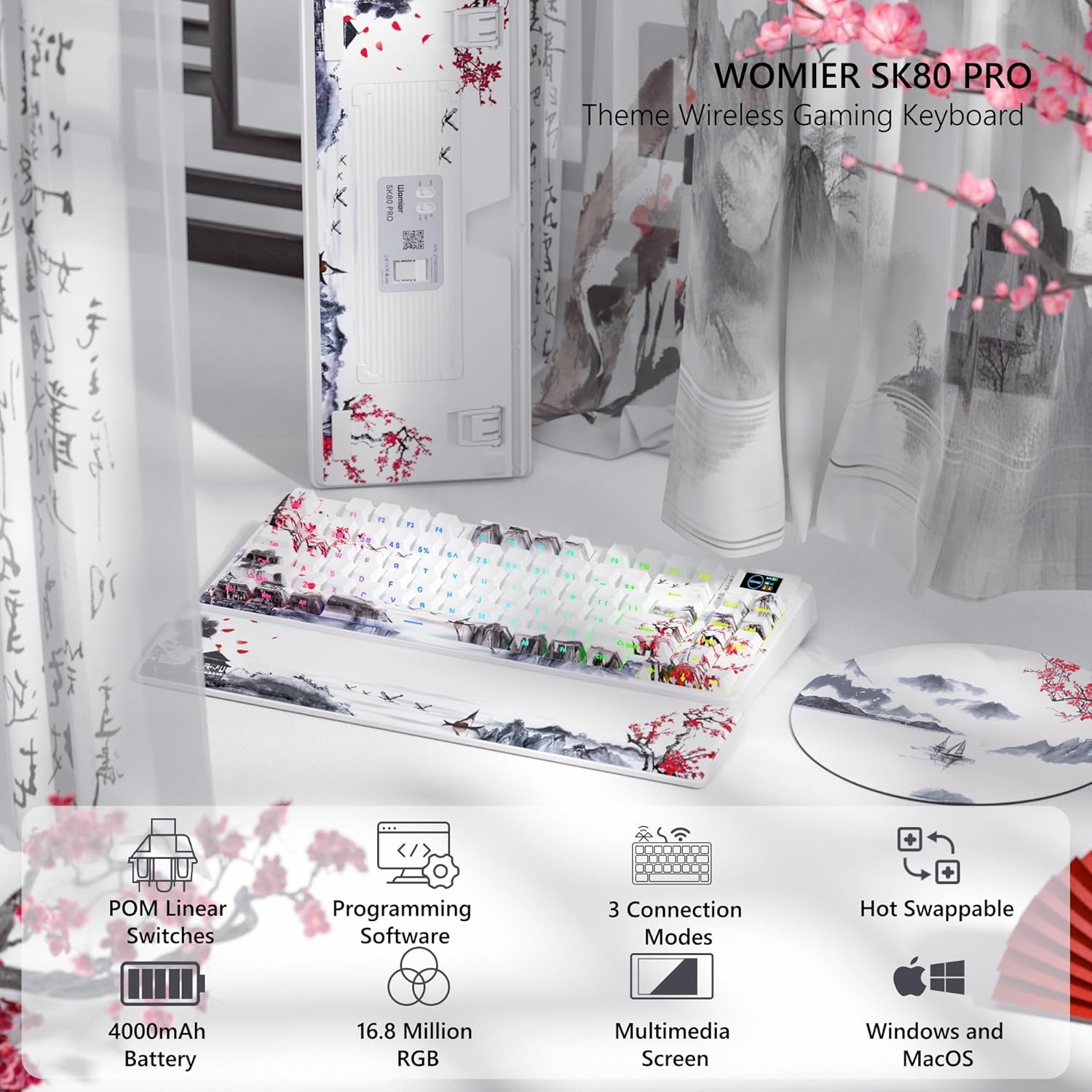 【With Theme Type Wrist Relaxation and Mouse Pad 75% Wi-fi Mechanical Keyboard】Improve the wi-fi gaming keyboard with high-quality leather-based wrist relaxation and mouse pad to make your expertise extra full. The keyboard adopts the traditional key caps shine by way of artwork theme keycaps. Expertise most consolation whereas gaming with gasket mount design. The keyboard options an EVA positioning plate and backside filling for a gentle and responsive really feel for an immersive gaming expertise.