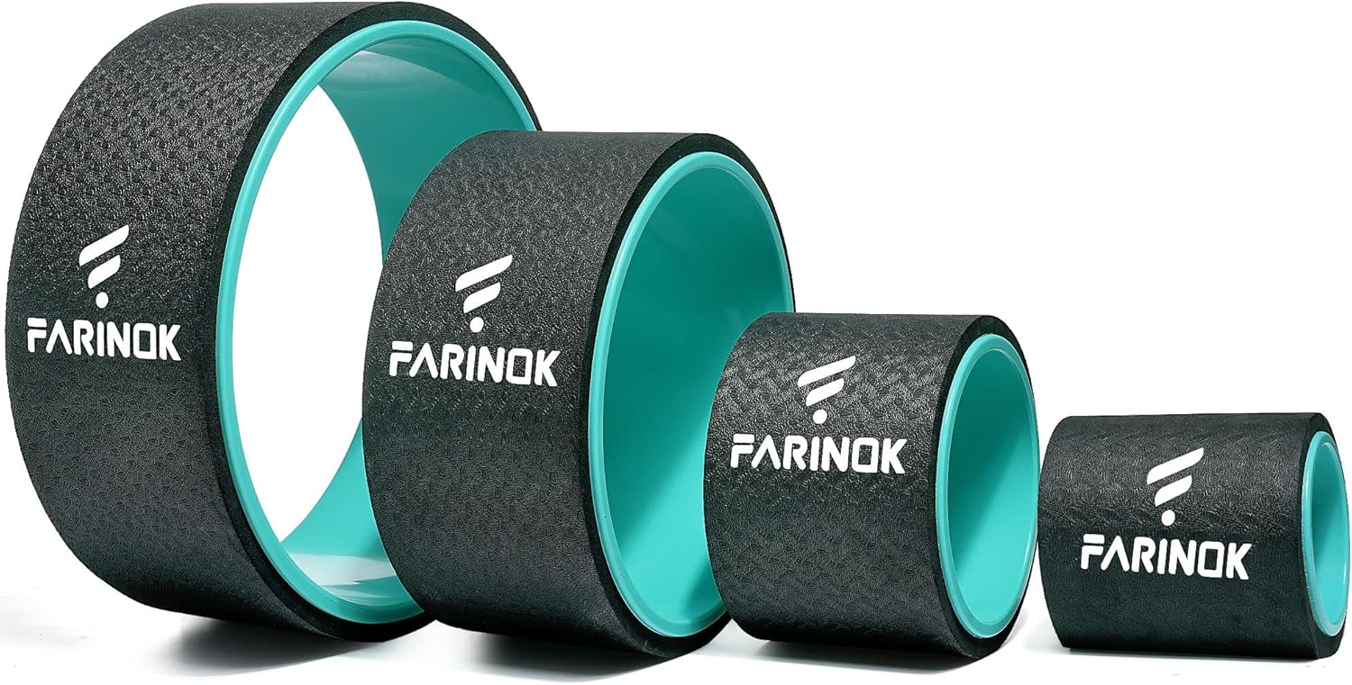 Yoga Wheel Set of three + 1: The 4 sizes wheel present totally different ranges of strain to the muscle tissue focused to your particular coaching wants. Our huge wheels are 13 inches in diameter with mild strain and are glorious for deep posture and backbending. Our 10 “medium strain rollers are excellent for stretching your again and hips, the smallest being 6” in diameter with deep tissue strain, excellent for massaging the neck, again and legs.