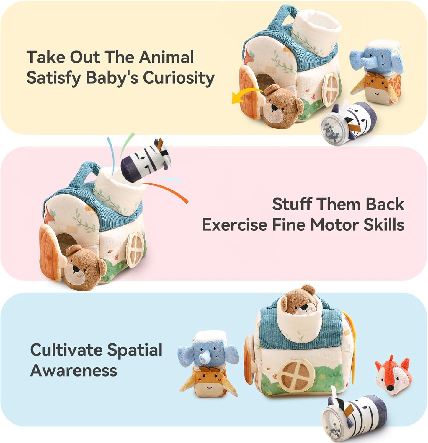 [ALL-IN-ONE TRAVEL KEEPS BUSY TOY] Designed with a carry deal with and self-storage home, this toy is the final word On-The-Go companion for vehicles, strollers, and airplanes. Merely fill, dump, and repeat the enjoyable—the gentle jungle home doubles as a sport, conserving your child engaged and quiet wherever you go.