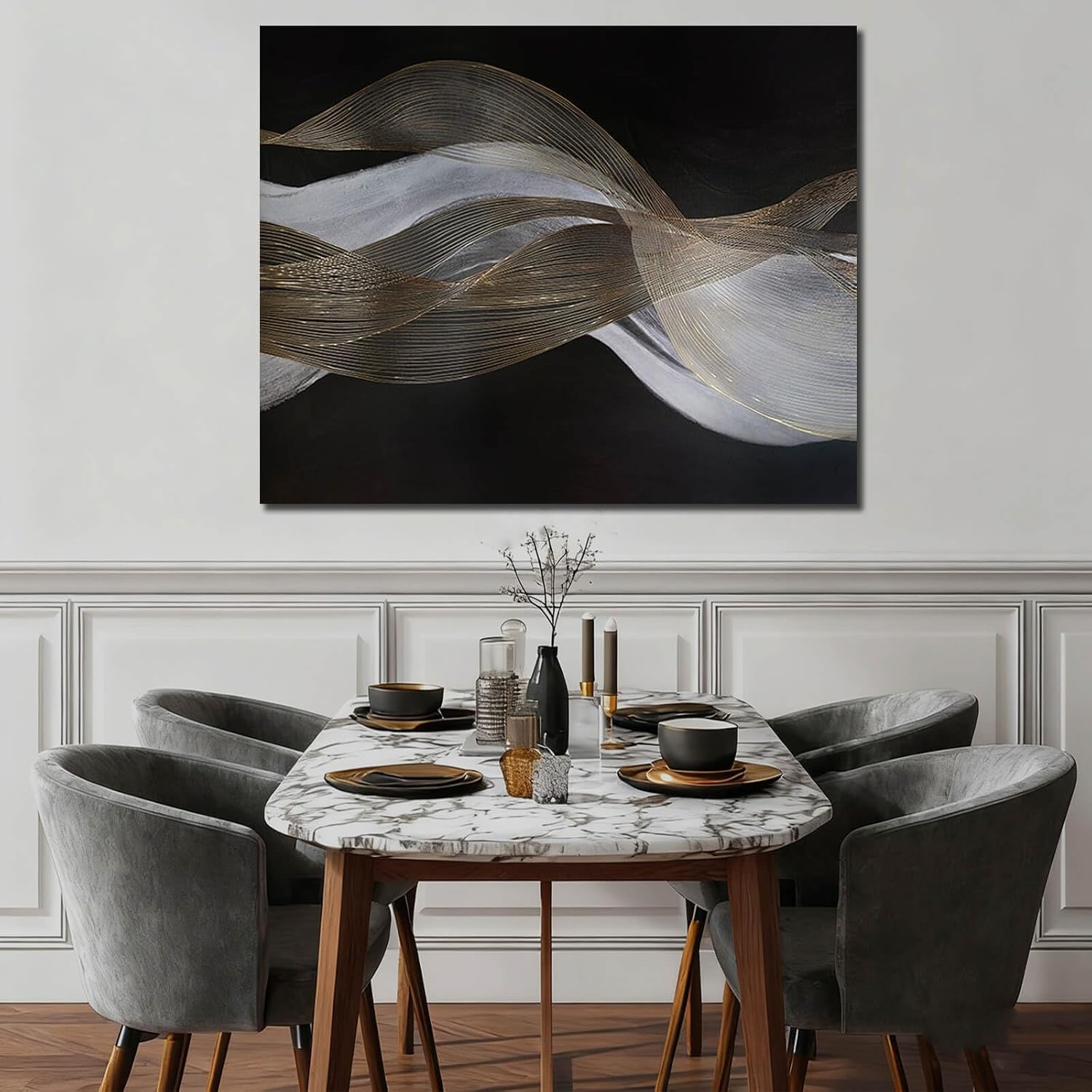 ZENPEE Trendy Gold and White Wave Wall Artwork, Hand Painted on Canvas, Bl... Original price was: $129.99.Current price is: $109.99.