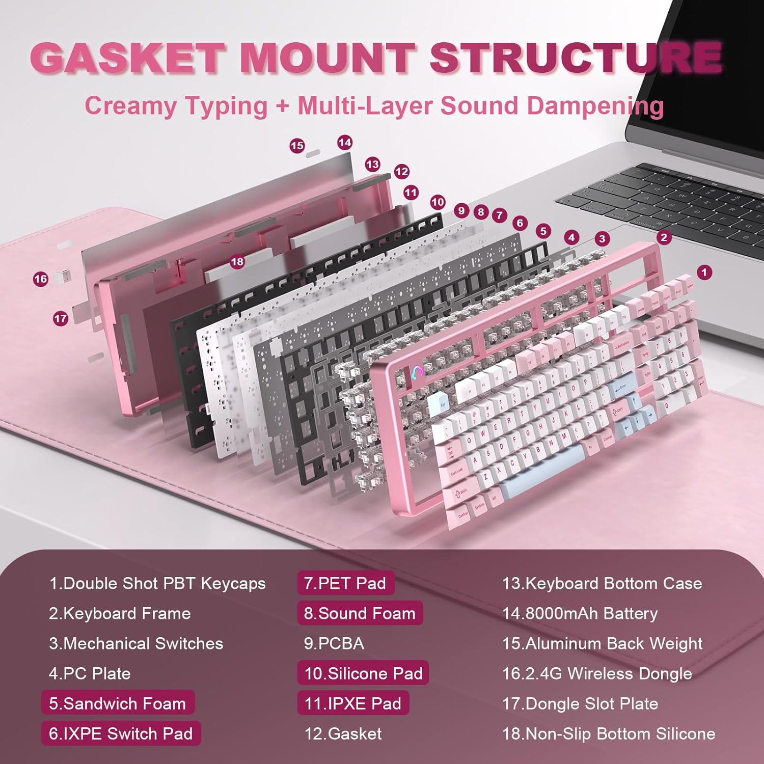 1800 Aluminium Gasket Mounted Keyboard: YUNZII AL98 mechanical keyboard is crafted from aluminum keyboard case, superior gasket-mounted design with 5-layer cushioning, and factory-lubed linear switches for creamy sounding keyboard. This compact 1800 structure keyboard with quantity pad boosts productiveness whereas saving desk house, making it excellent for gaming, programming, and workplace keyboard use